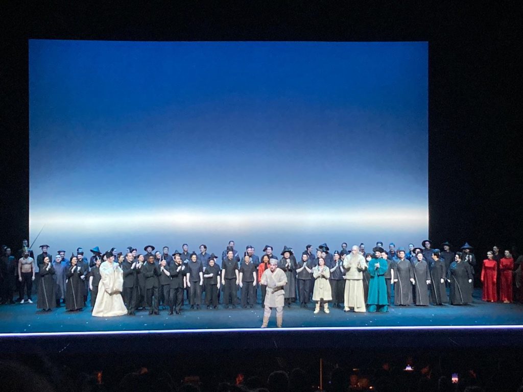 Vue ici même il y a deux ans, cette magnifique production de Bob Wilson revient à Paris, avec un casting de bien meilleure qualité qu’en 2021. Cette mise en scène est définitivement remarquable. Totalement épurée, dans le style caractéristique de Wilson, elle se démarque de ce que l’on voit habituellement par son esthétisme d’une grande pureté. La scène, quasiment dénuée de décors, est utilisée sur toute son horizontalité pour faire défiler les tableaux qui nous réjouiront l’œil. La gestuelle des nombreux protagonistes sur scène est très minimaliste, souvent empruntée au théâtre Nô, finissant systématiquement sur des postures figées. Soutenue par une mise en lumière exceptionnelle, où bleu et rouge prédominent, certains tableaux sont saisissants – il en va ainsi par exemple de la première apparition de Turandot sur son promontoire, toute de rouge vêtue, couleur du sang qu’elle aura tant fait verser à ses prétendants. Les choristes sont dans l’ombre, en clair-obscur quand les poursuites illuminent les solistes au cours de leurs interventions. Cette proposition plutôt statique permet aux artistes de se focaliser sur le chant, et le résultat est plus que probant. Mika Kares est un Timur à la basse profonde et au phrasé précis. Les 3 ministres (Florent Mbia, Maciej Kwasnikowski et Nicholas Jones) apportent de la fantaisie sur scène, virevoltant et bondissant mais également dotés d’instruments puissants qui empliront la vaste enceinte de Bastille. Brian Jagde campe un Calaf légèrement emprunté mais à la voix exceptionnelle. Le timbre est pur, la ligne de chant très rectiligne et l’aigu surpuissant. Son très attendu « Nessum dorma » lui vaudra une belle ovation. Ermonella Jaho incarne une Liù déchirante. La soprano Albanaise nous offre une nouvelle fois ses aigus cristallins absolument sublimes dans les pianissimo, et son vibrato si caractéristique. Ses deux grands airs auront été des moments forts de la soirée. Finalement, seule Irène Theorin dans le rôle-titre nous laisse sur notre faim. Certes, les aigus sont là et elle passe encore aisément ses contre-uts. Mais ils restent trop tendus, voire forcés et les légato sont parfois déficients. Nous aurions préféré Radvanoski qui était initialement prévue pour ce rôle. Enfin, les chœurs sont une des autres grandes réussites de la soirée. Réglés au cordeau, d’une précision infaillible, ils nous transportent à chacune de leurs (nombreuses) interventions. Et comme à la baguette le jeune chef Michele Spotti conduit parfaitement l’orchestre de l’Opéra de Paris, avec rigueur et prenant soin de respecter l’harmonie entre la scène et la fosse, la réussite de cette soirée aura été quasiment totale. Transporté, le public aura décerné une longue et méritée standing ovation aux artistes au moment des saluts.