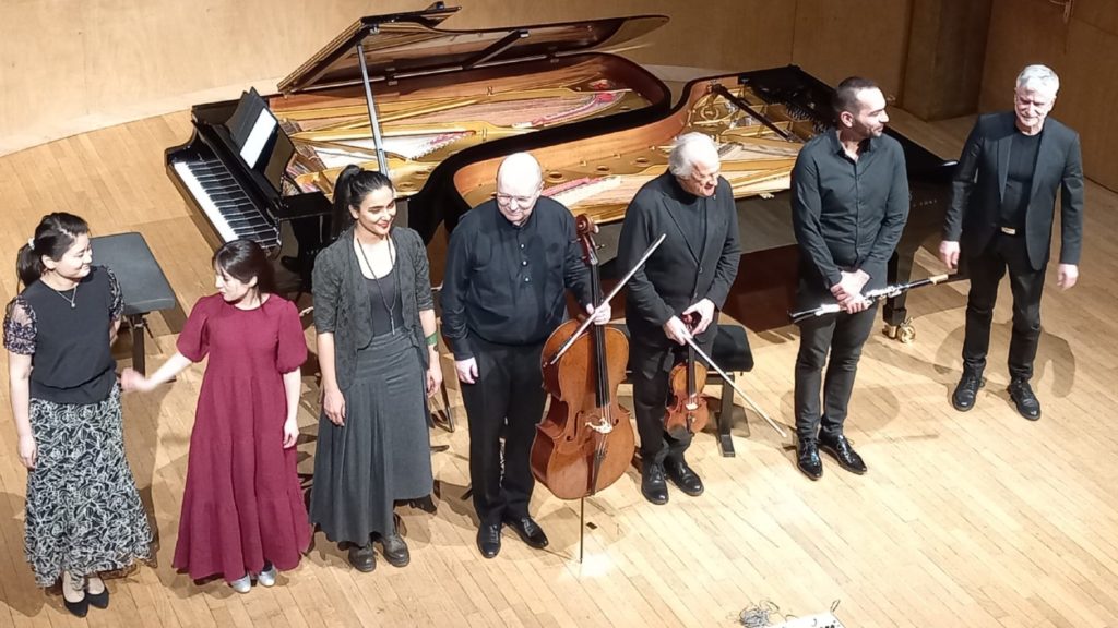 Pour la fin de ses responsabilités de directeur des concours à l’ Ecole normale de musique de Paris – Alfred Cortot, David Lively recevait lundi à Cortot, public et amis comme chez lui. Régis Pasquier, Anssi Karttunen et Pierre Génisson, ses collègues, entouraient le maître et ses élèves Ayame Ishise, Prix Cortot 2022, Kana Itō et Nastaran Yasdani pour un programme hommage intense et créatif. David Lively et ses invités fêtaient des compositeurs élèves ou professeurs à l’ Ecole normale de musique de Paris dans leur jardin, ouvrant largement ses portes vers l’Orient. Émouvant, vivant, profond et subtil.