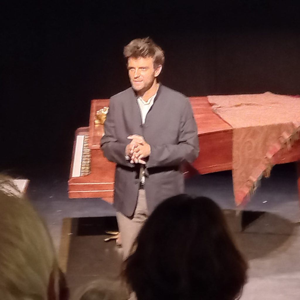 La langue et l’esprit de l’écrivain français éclairent toute la soirée, sobre, intense et précise, comme la mise en scène de François Michonneau. Les mouvement, les lumières, les gestes, attitudes et regards nous plongent aussi bien dans l’homme devant nous que dans l’histoire et ses figures, les plus grandes ou moins connues. La double performance, acteur-pianiste, de Guilhem Fabre époustoufle, transporte et régale. “Personne n’est à la fois Gérard Philippe et Wilhelm Kempf” me souffle à la sortie un ami, musicien lui aussi, avant d’avouer que ce qu’il a vu ce soir n’est pas loin de l’en faire douter.