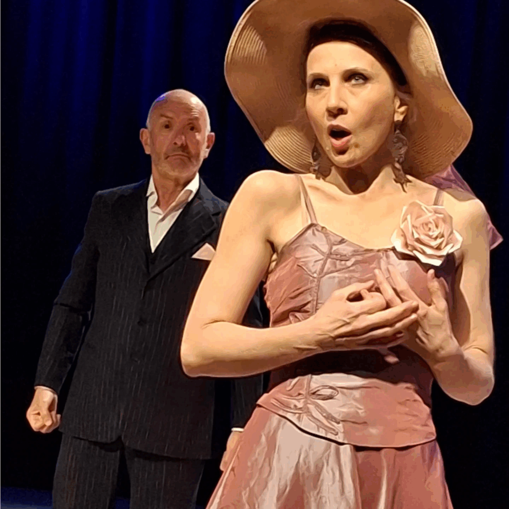 Sur scène un duo lyrique chante Mozart accompagné au piano. Amour, jalousie, séduction, emprise aussi – n’est-ce pas Don Giovanni ?! – le récital s’achève. Aux saluts, un spectateur glisse sa carte à la soprano. De retour chez eux les deux artistes, en couple aussi à la ville, ne jouent plus et (se) font une autre scène… En 1977 le compositeur français méconnu à tort, Jack Ledru mettait la tonique et acide saynète de Georges Courteline en musique avec brio et grâce, beaucoup de rythme, d’humour et le respect total du texte original. Sa partition fait doublement mouche après les 6 airs de Mozart donnés par le duo Karine Godefroy Xavier Legasa aussi inspiré que joueur et musical. Martin Beau les accompagne et sert Mozart et Ledru avec applomb. Amateurs de chant lyrique, amoureux de comédie ou mieux, les deux, guettez ce spectacle musical magique et courez-y ! C’est joyeux, incisif, tour à tour tendre et moqueur. Un cocktail opéra-vaudeville inédit, réussi et prenant ! Un coup de maître ! LA PEUR DES COUPS Karine Godefroy, Soprano Xavier Legasa, Baryton Martin Beau, Pianiste Et la participation de Bruno Marchand, M. Ledru Mise en scène : Karine Godefroy Lumières : Fabrice Arnaud 1. Duo d’opéras de Mozart extraits des Noces de Figaro, Cosi fan tutte, Don Giovanni et La Flûte enchantée. 2. “La Peur des coups” de Jack Ledru Opéra bouffe en un acte de 1977 Livret d’après la pièce éponyme de Georges Courteline (1894) Argument : Deux chanteurs, en couple à la scène comme à la ville, donnent un récital composé de duos d’opéras de Mozart. De retour à la maison, Monsieur accuse Madame de s’être laissée courtiser, “peloter” même, par un pousse-cailloux, un soldat de la pire espèce. Il est ivre de jalousie et menaçant. Elle le met au défi d’aller trouver ledit soldat. Mais le mari est un pleutre d’ une mauvaise foi sans pareille…